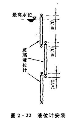 (6)液位计:一般应在绿巨人在线视频官网侧壁上安装玻璃液位计,用于就地指示水位。在—个液位计长度不够时,可上下安装2个或多个液位计。相邻2个液位计的重叠部分,不宜少于70 mm,见图2—22。若在绿巨人在线视频官网未装液位信号计时,可设信号管给出溢水信号。信号管一般自绿巨人在线视频官网侧壁接出,其设置高度应使其管内底与溢流管底或喇叭口溢流水面平齐。管径一般采用DNl5信号管可接至经常有人值班房间内的洗脸盆、洗涤盆等处。若绿巨人在线视频官网液位与水泵连锁,则在绿巨人在线视频官网侧壁或顶盖上安装液位继电器或信号器,常用的液位继电器或信号器有浮球式、杆式、电容式与浮平式等。