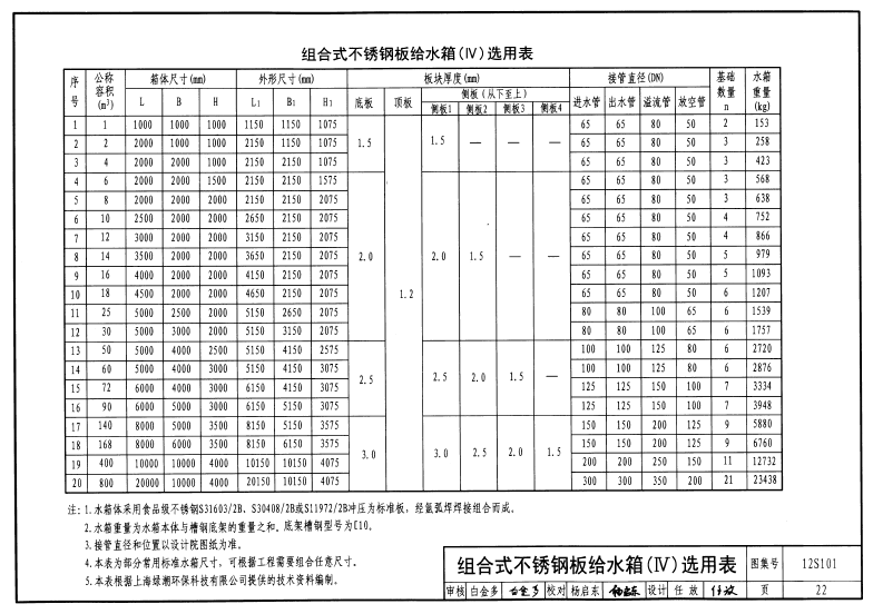 12S101 不锈钢消防绿巨人在线视频官网图集(选用表)